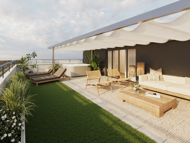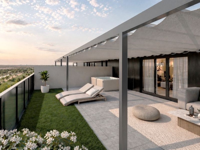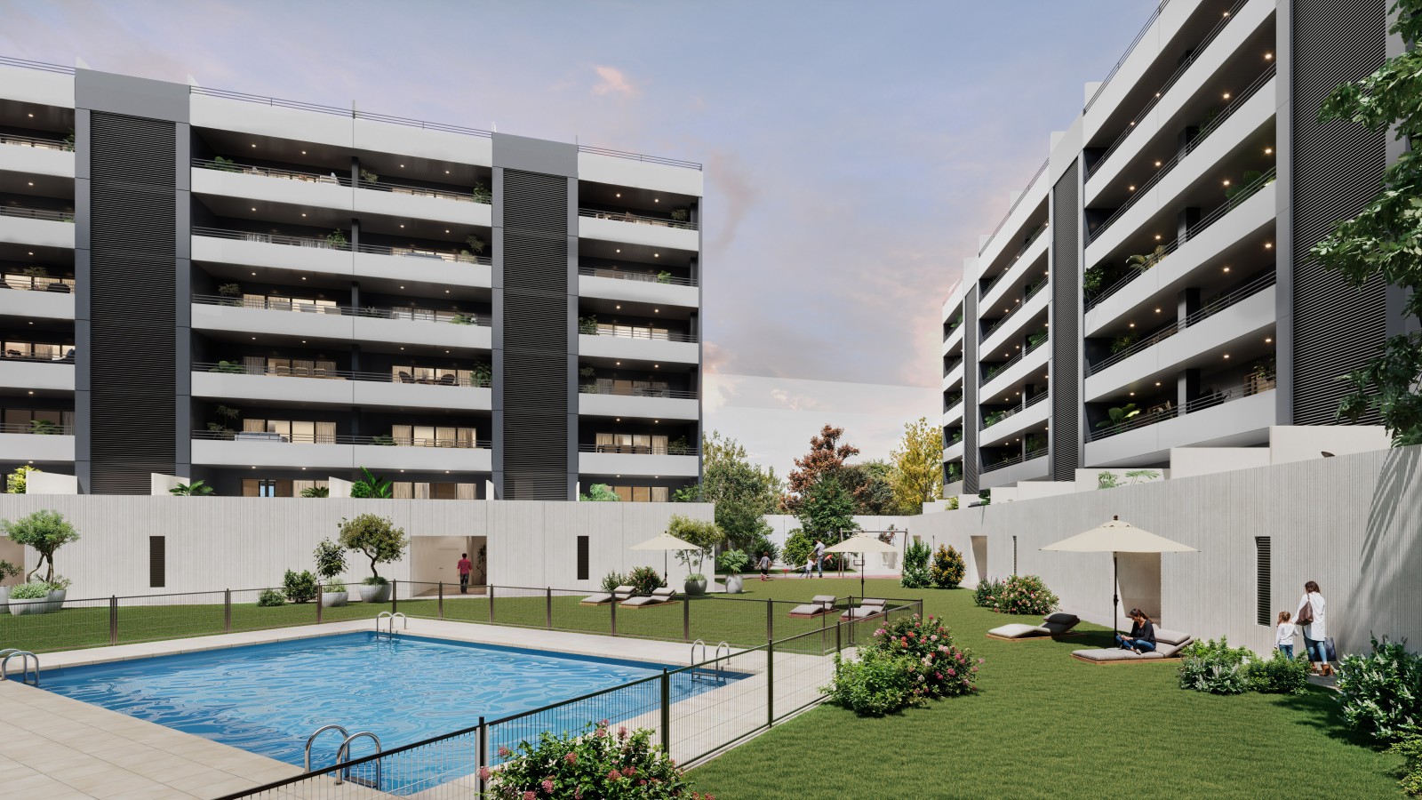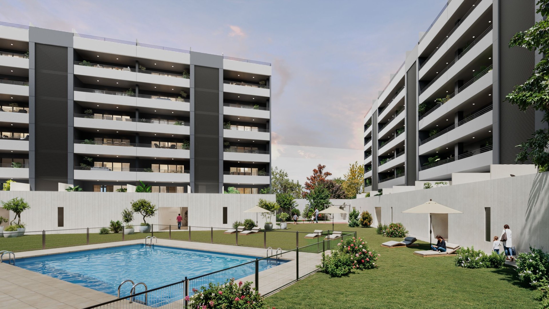 Viviendas con amplios salones y terrazas, plantas bajas con amplias terrazas y áticos dúplex con solárium y jacuzzi. Zonas comunes con piscina, paseos y juegos infantiles para disfrutar al aire libre.
