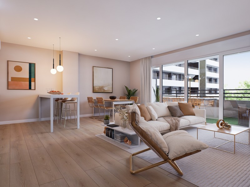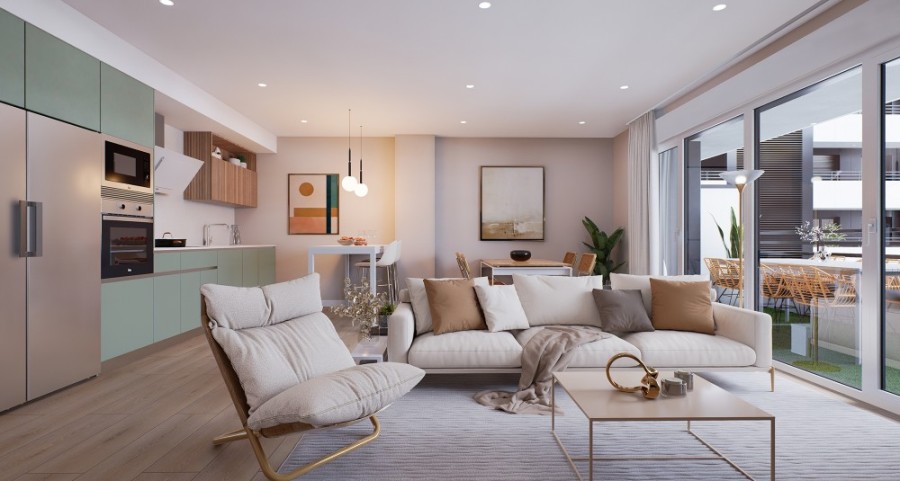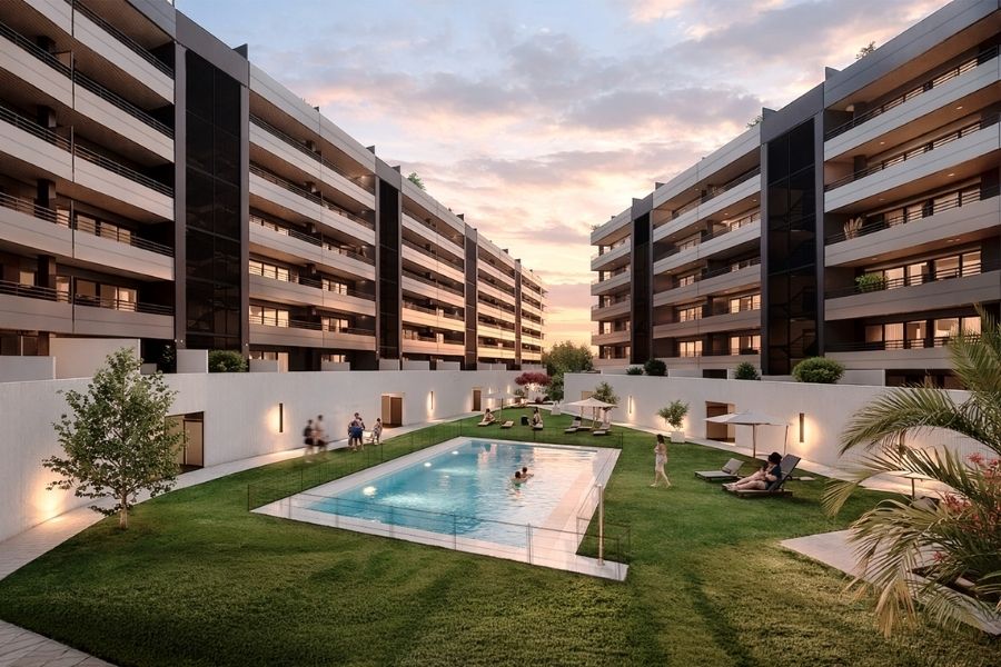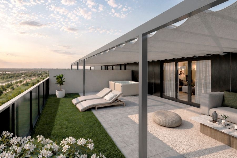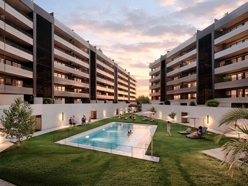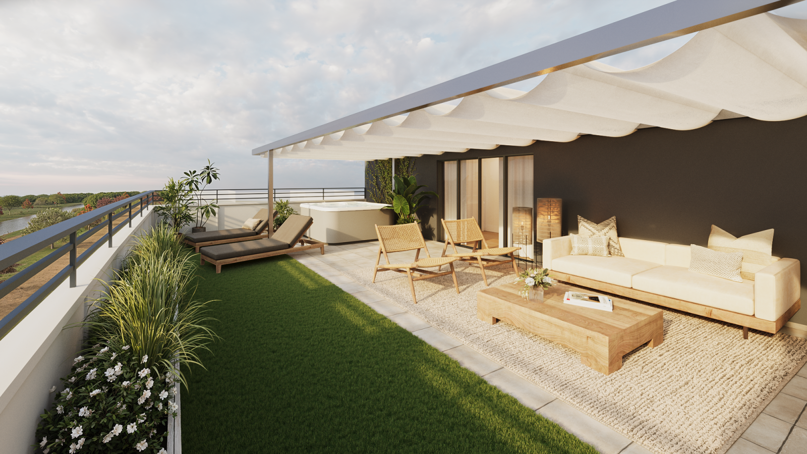Viviendas con amplios salones y terrazas, plantas bajas con amplias terrazas y áticos dúplex con solárium y jacuzzi. Zonas comunes con piscina, paseos y juegos infantiles para disfrutar al aire libre.